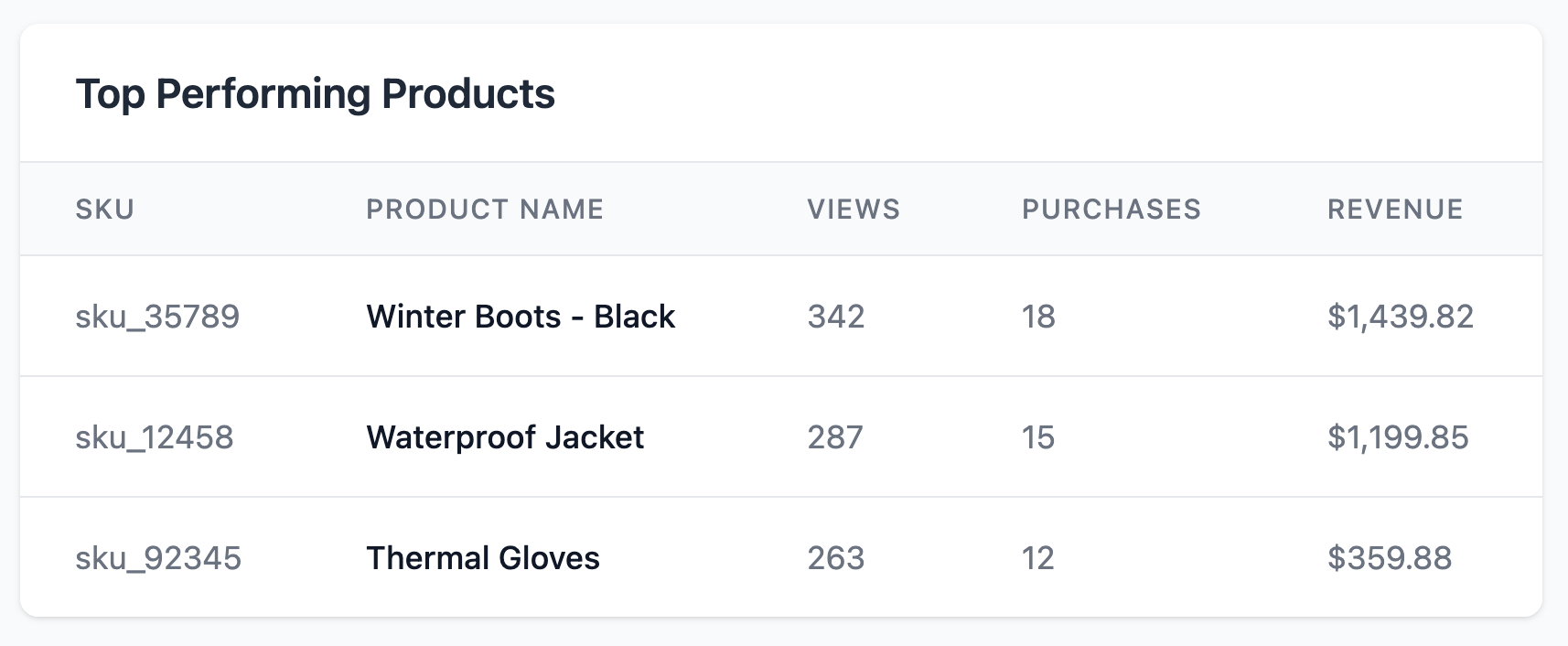 ... this is just a snippet, there are hundreds of thousands of similar linesThis raw data is not very useful by itself. But through data transformation, you can create useful information from these logs, such as the top performing products.